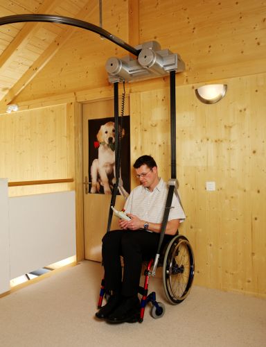 Ein Deckenlift lässt sich überall problemlos einbauen - selbst in engen und steilen Treppenhäusern. Durch einfache Anpassungen ist sogar eine Schienenführung durch Türen möglich. Der Antrieb entspricht modernster Technik und garantiert eine dauerhafte Sicherheit.